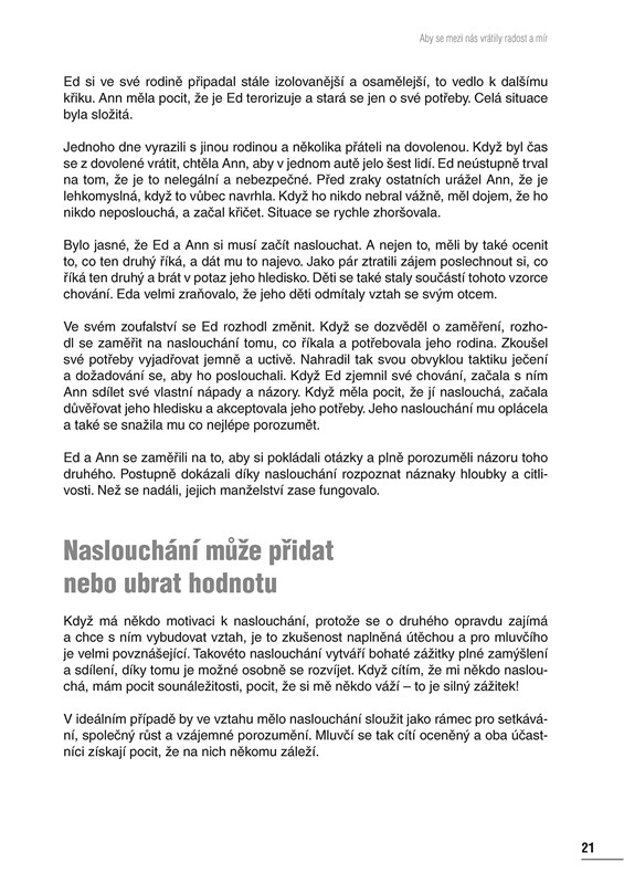 Je mnoho způsobů, jak představit narativní přístup v terapii. Jedním z hledisek je to, které zdůrazňuje význam vztahů: vztahů mezi lidmi, vztahů k sobě samým, vztahů ke svým problémům i silným stránkám a zdrojům. Vztahy můžeme přirovnat k rostlinám. Vyžadují naši pozornost a je s nimi spojena spousta práce. Bez péče tyto rostlinky schnou a zarůstají plevelem. Zároveň toto poznání přináší naději a útěchu: když se budeme našim vztahům věnovat, bude se jim dařit a budou růst. V oblasti mezilidských, rodinných a partnerských vztahů je to tak, že když se zaměříme na pěstování míru, dojdeme ke vztahům naplněným láskou. Láska pak v této perspektivě není něco samozřejmého, ale něco, o co se můžeme zasloužit.