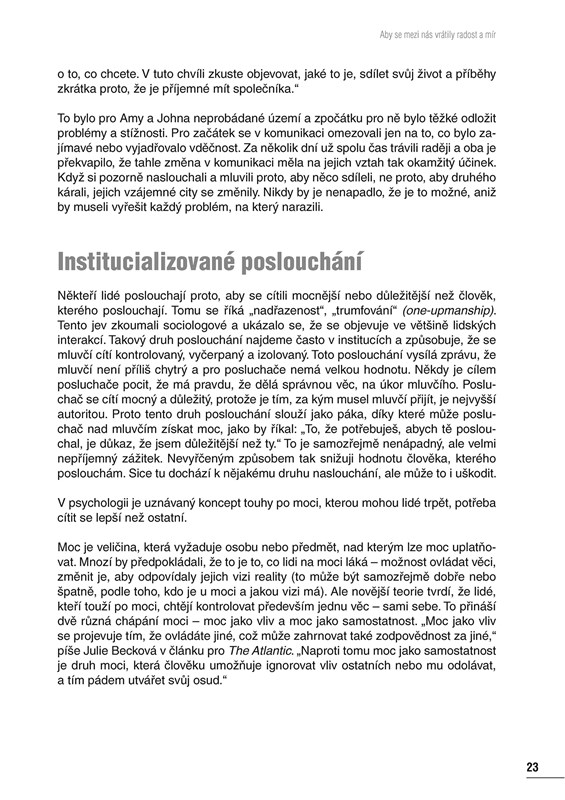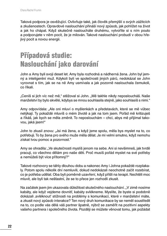 Autorka předkládá ve své knize nový přístup k manželství, vztahům a osobnímu naplnění, který čerpá z více než 40 let zkušeností s poradenstvím a hluboké vnitřní moudrosti. Najdeme zde řadu cenných myšlenek a konceptů spojených s pronikavými příklady z terapeutické praxe. Publikace nabízí nástroje a inspiraci profesionálním terapeutům i párům.