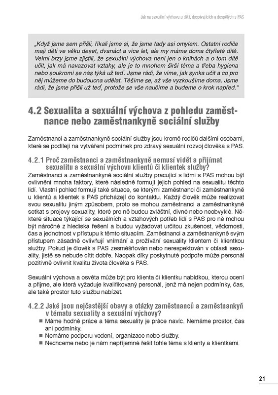 Navržené metody a probíraná témata mohou být inspirací i pro práci s dospělými lidmi s PAS.