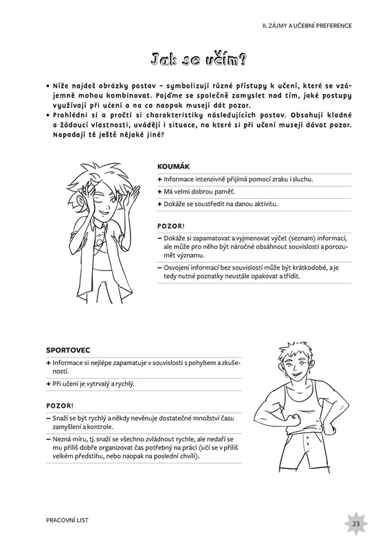 Kromě pracovních listů určených pro samotné jedince s dyslexií obsahuje publikace i metodické listy obsahující stručné shrnutí tématu pro poradenské či pedagogické pracovníky nebo pro rodiče dětí s dyslexií.