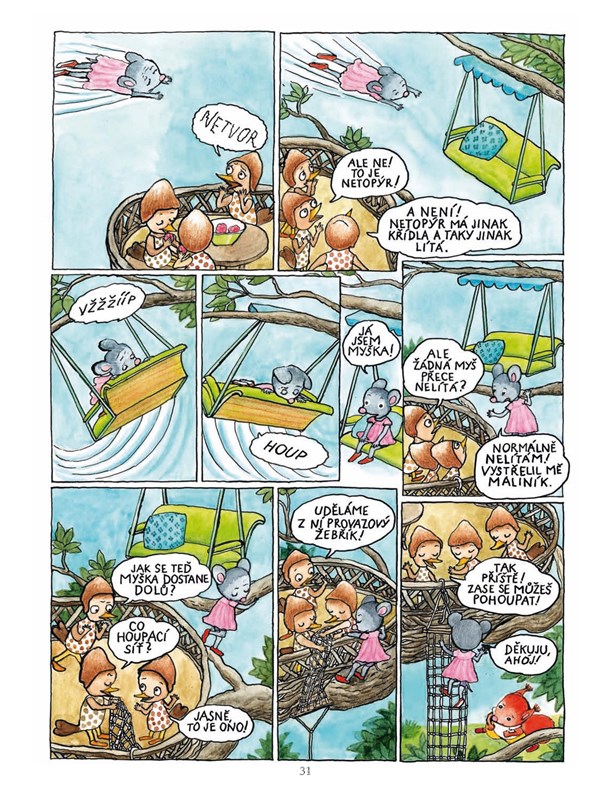 Dvoustrany obrázkového komiksu jsou prostřídány malovaným čtením. Kniha je vhodná pro