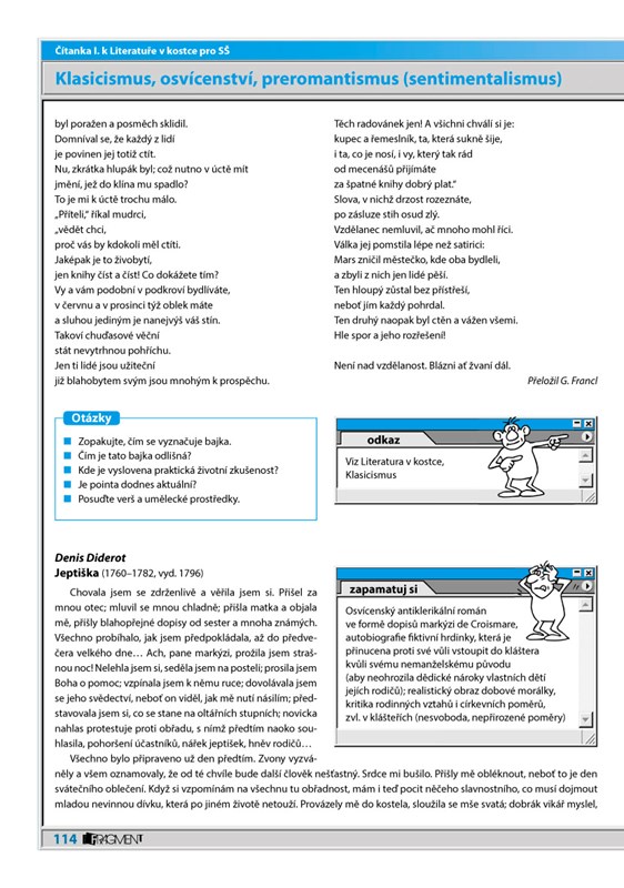 Studenti středních škol pozor! Získejte pečlivě vybrané ukázky textů, společně s metodickými úkoly pro práci s nimi v I. dílu čítanky k učebnici Literatura v kostce. Tato učebnice je vhodným doplňkem nejen pro přípravu k maturitní zkoušce, ale pro všechny studenty SŠ.