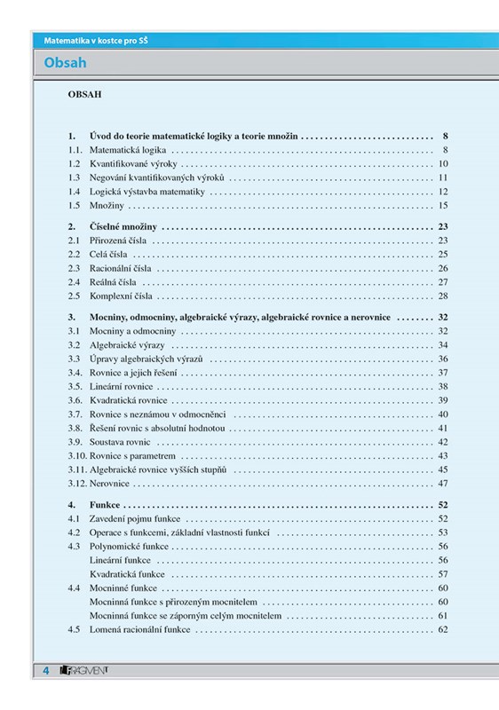 Neváhejte a pořiďte si přepracované a aktualizované vydání populární doplňkové učebnice matematiky pro střední školy nyní v novém praktickém formátu. Učebnice přehledmě shrnuje veškeré učivo matematiky probírané na středních školách a je nejen výbornou učební pomůckou pro každého studenta SŠ, ale také přípraví k přijímacím zkouškám na vysokou školu. Učebnice je doplněna příklady a testy k procvičení učiva.