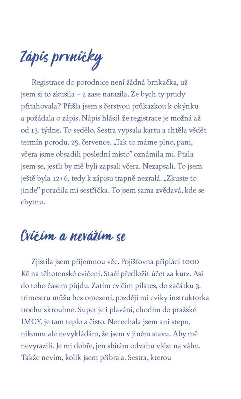 Zatím ještě není nic vidět. Nevadí. Je ještě úplně malinkatý, ale je tam! A ty máš jasný plán – báječně si to užiješ, nebudeš nic řešit, jen se strašně těšit. No a samozřejmě budeš celé těhotenství vypadat absolutně božsky, přibereš jen trošku a jen bříško, takže ti rozhodně žádné šaty typu stan nehrozí. Máš jasný plán na příští měsíce a na seznam rovnou připisuješ i novou červenou rtěnku. Protože z tebe žádná vycukaná těhule nebude. Jasně, hurá! No, ale kdyby ses náhodou, fakt čirou náhodou, třeba přistihla, jak bulíš u toho seriálu, na který se přece vůbec nikdy nekoukáš, smrdí ti i zubní pasta, rozčiluje celá rodina, jíš syrovou mouku, uvažuješ o odstřelu nastávajícího tatínka, pokud ti ještě jednou řekne, ať se uklidníš, že se přeci nic neděje a tvoje nejlepší kamarádka je najednou pěkně divná a prostě tě vůbec, ale vůbec nechápe… taky super. Vítej v klubu! Je nás tu už dost, se rtěnkou i bez, držíme ti místo.