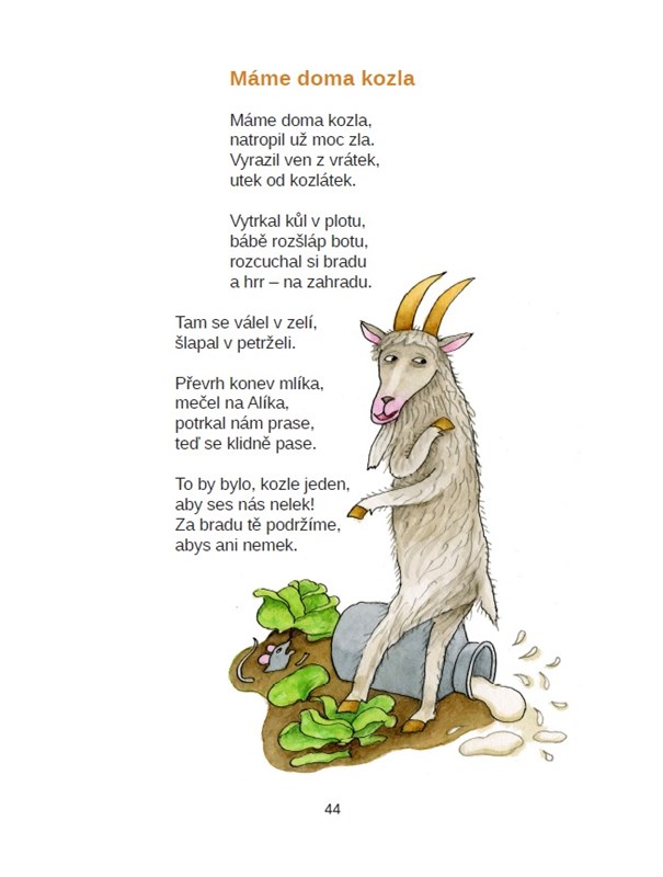 To jsem já, bradička bílá! Otevřte, kůzlátka milá. Nesu sladké zelíčko, tak otevřte maličko! – Těmit...