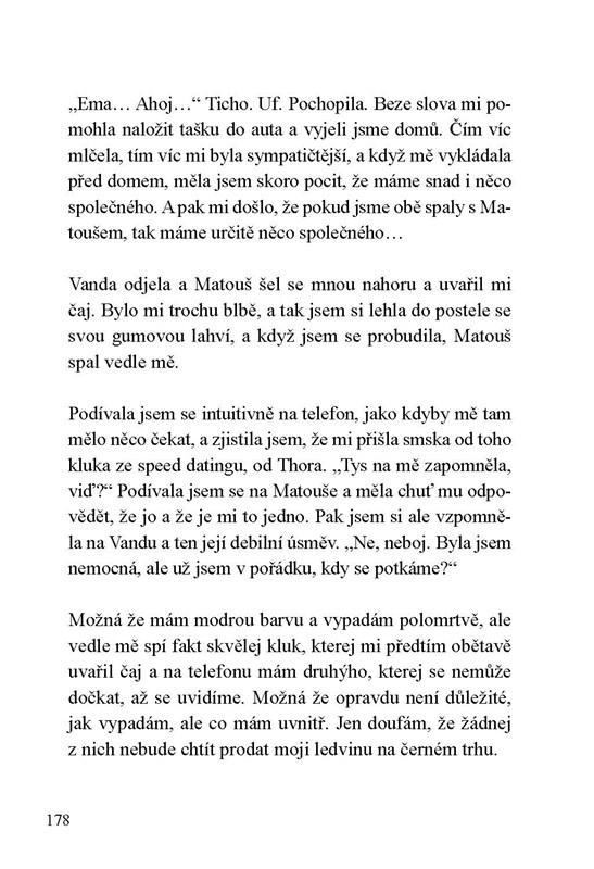 Styky s Emou jsou deníkem tohoto randění, jakýmsi příběhem na pokračování, v němž se spousta postav každý týden mění, některé se pár týdnů zdrží a některé zůstanou až do konce…