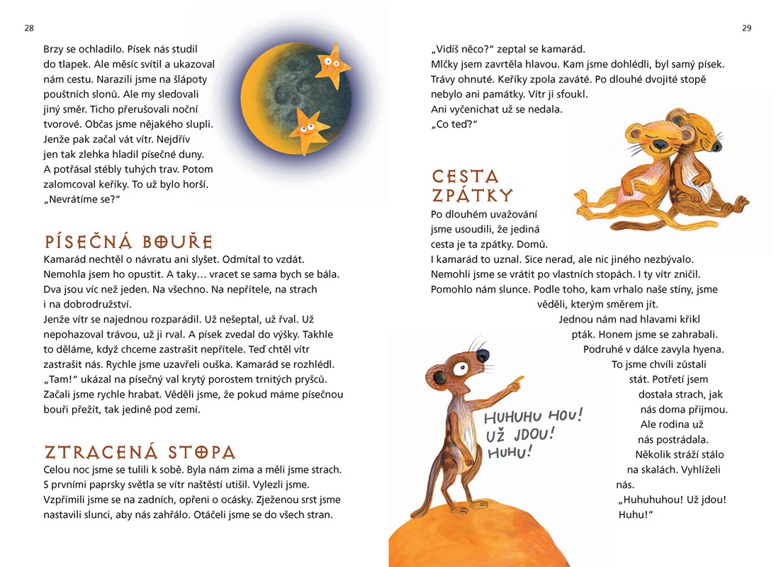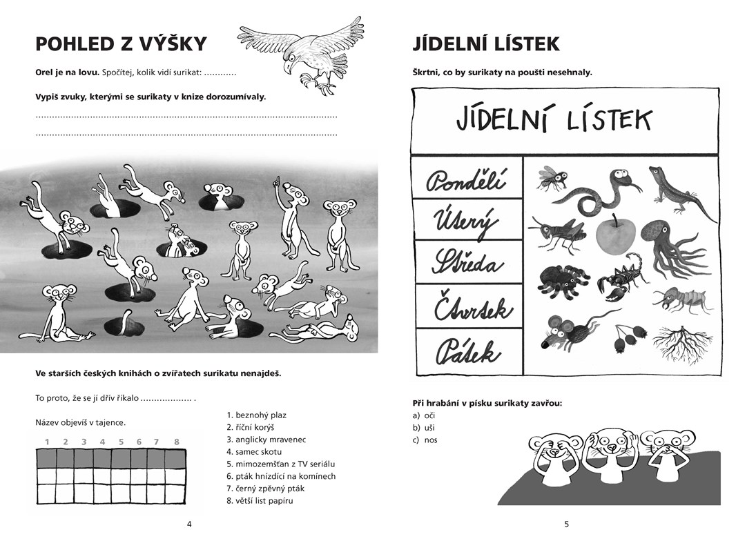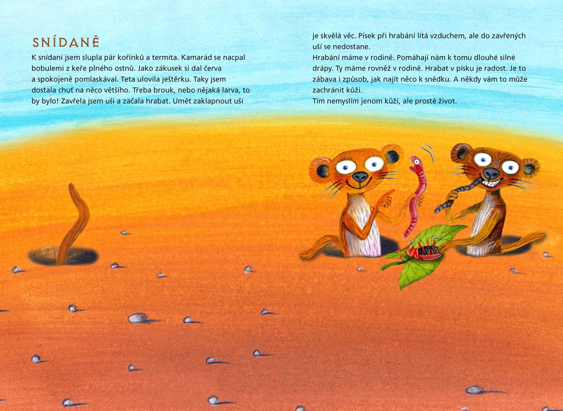 Hravé vyprávění o roztomilých surikatách se spoustou rébusů a zajímavostí v přiloženém sešitě