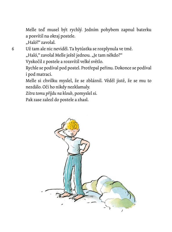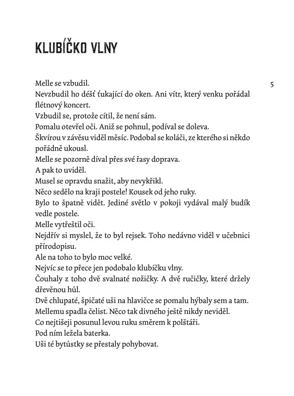 Melle se vzbudí uprostřed noci. Na kraji jeho postele sedí divná bytůstka. Vypadá jako klubíčko vlny, má ručky a nožky a dvě chlupaté, špičaté uši. Ale jakmile Melle rozsvítí, bytůstka zmizí. Když o ní Melle vypráví ve škole, všichni se mu vysmějí. Dokonce i tatínek, který je přírodovědec, říká, že je to nesmysl a že takové bytůstky neexistují. Ale Melle si je jistý tím, co viděl…