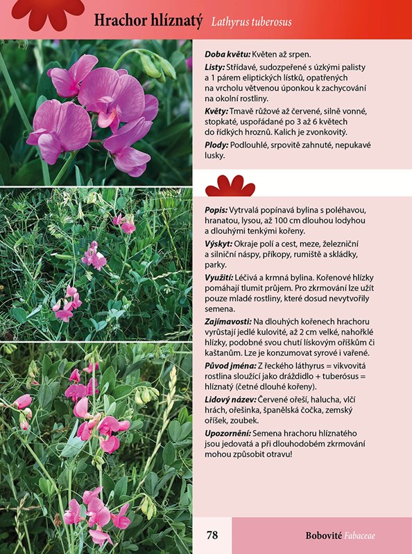 Rostliny jsou v knize řazeny abecedně, vždy podle barvy květů. Jednoduché určující znaky a fotografie pořízené v přirozeném prostředí pomohou k jejich snadnému určení všem, kdo se zajímají o?přírodu a chtějí se dozvědět více o konkrétním druhu. Kniha dále uvádí botanické zařazení rostlin, lidové názvy, původy jmen, zajímavosti i využití rostlin jako léčivých bylinek či zdravých potravin.