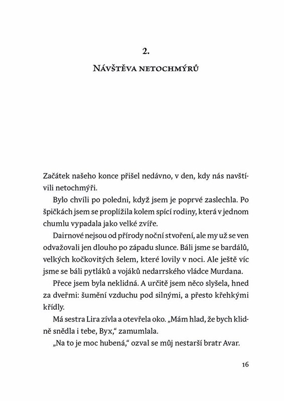 Nebála se zemřít jako první, jen nechtěla zůstat naživu úplně poslední – ultima. Byx je nejmladší ze smečky dairnů. Tito tvorové vypadají jako psi, ale patří k šesti vládnoucím druhům. Protože dovedou vždy rozeznat pravdu od lži, lidé se je snaží vyhubit. Když Byx přijde o celou svoji smečku, zdá se, že je vážně poslední. Na své pouti za bezpečným útočištěm si však najde několik přátel a pochopí, že za pravdu a spravedlnost má vždy smysl bojovat!