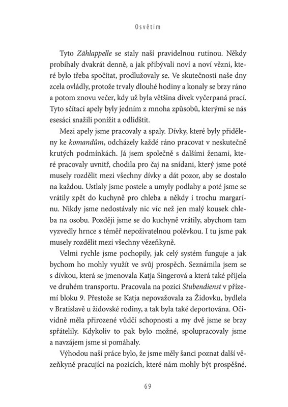Slovenská učitelka Magda Hellingerová byla do Osvětimi deportována 28. března 1942. Esesáci ji vybrali mezi takzvané vězeňské funkcionáře, kteří měli plnit jejich kruté rozkazy a udržovat řád mezi desetitisíci živořících vězňů. Magda tak každý den balancovala nad propastí: Jak pomáhat ostatním, zachraňovat životy a přitom na sebe neupozornit? Její příběh svědčí o tom, že ušlechtilou stránku lidského ducha nezničí ani ty nejkrutější podmínky.
