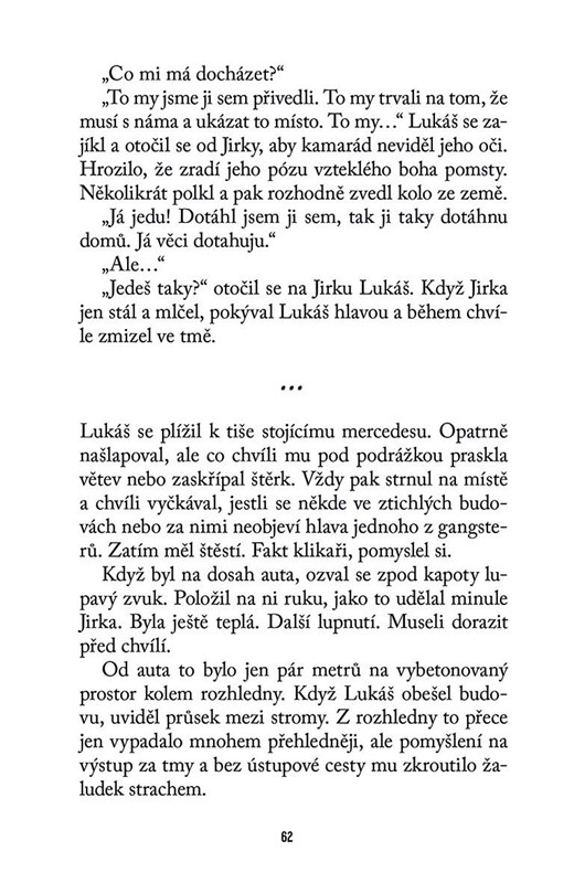 Krkavec – na první pohled obyčejný kopec se starou rozhlednou a televizní věží kousek za Plzní, býval oblíbeným cílem výletů. Teď ale kolem něj vyrostl plot a nikdo tam nesmí. Přesto však není opuštěný. Tajemný bílý mercedes sjíždí z Krkavce do města a muži v něm po něčem pátrají. Nebo po někom?
