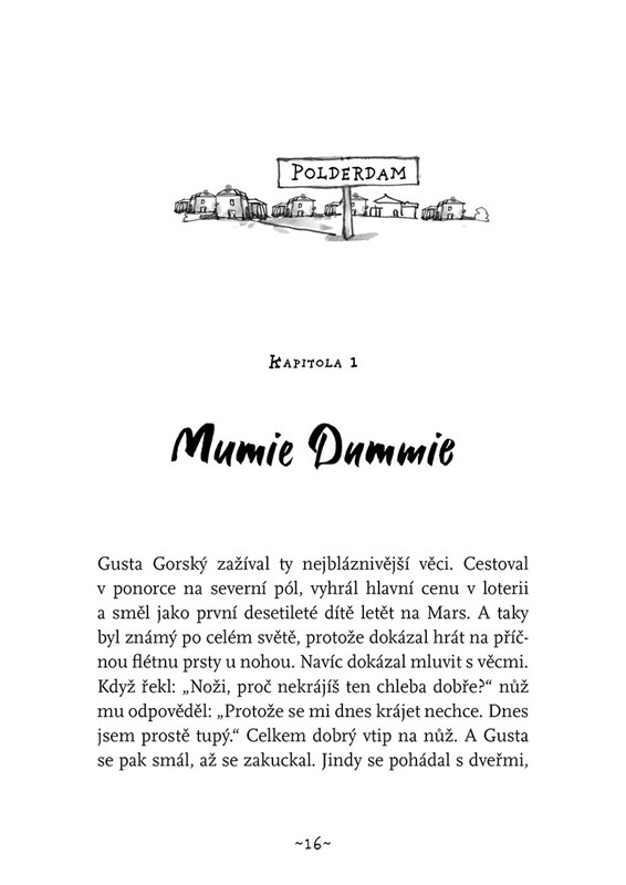 Jen si to představte. Jmenujete se Gusta, jste úplně obyčejný kluk žijící v té snad nejnudnější vesnici na světě. Jednoho dne vejdete do svého pokojíčku, ucítíte něco špinavého, rozhlédnete se a najednou uvidíte ve své posteli mumii. A ona se hýbe. Co uděláte? Samozřejmě se vyděsíte. Zavřete oči, napočítáte do deseti a mumie je zase pryč.