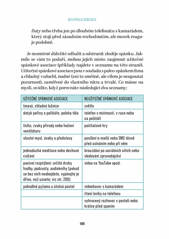 Kdybyste mohli své dospívající děti ochránit před úzkostí, depresí a chronickým stresem a podpořit v jejich životě pocit štěstí a pohody, udělali byste to? V knize Nevyspalá generace autorky upozorňují na fenomén, který významně ohrožuje fyzické i duševní zdraví dospívajících: nedostatek spánku. Generace nespavců se ocitla v „dokonalé bouři“ způsobené všudypřítomností obrazovek a návykovostí sociálních sítí, velkými studijními nároky, časným začátkem školní docházky i biologickým sklonem dospívajících k pozdějšímu usínání.