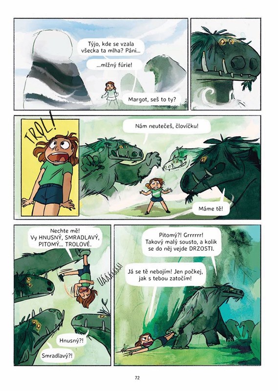 Sestry Kyra, Margot a Jana se těší na prázdniny u babičky, na opékání maršmelounů, lezení po stromech a výpravy za magickými tvory. Pak se ale Margot začne chovat podivně a Kyra s Janou dostanou strach z neznámých kouzel, která starší sestru vábí do hloubi lesa. Co se to s ní děje? Odvážná a rázná Kyra se s Janičkou a jejími přáteli z řad kouzelných bytostí vydá sestře na pomoc. Ať už se v mlze skrývá cokoli, je potřeba ji před tím ochránit.
