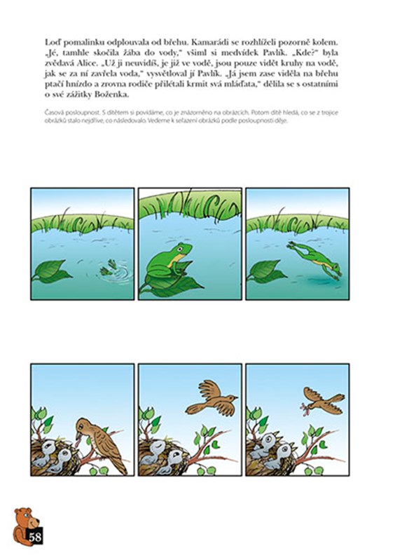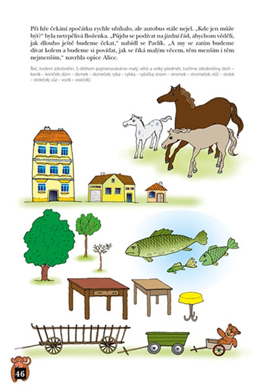 Někteří dospělí čtenáři se již setkali, a mají dobrou zkušenost, s edicí nakladatelství Computer Press určenou dětem. Mnozí už cíleně vyhledávají publikace autorky této knihy Jiřiny Bednářové, která se řadu let úspěšně zaměřuje na podporu rozvoje osobnosti dětí předškolního a mladšího školního věku. Je také možné, že již znáte soubor her a cvičení Mezi námi předškoláky pro tří- až pětileté děti, případně knihu pro děti pěti- až sedmileté. Prohlédnete-li si je, možná zjistíte, že pro vaše dítko jsou úkoly příliš jednoduché nebo poněkud obtížné. Všimnete si také, že věková období, pro něž jsou jednotlivé knihy určeny, se překrývají (3 až 5 let, 4 až 6 let, 5 až 7 let). Jak vidíte, autorka velmi správně pamatovala na vývojové zvláštnosti dětí, a tak upozorňuje nás, dospělé, na skutečnost, že každé dítě se vyvíjí v různých oblastech jinak. Některé je zdatnější v kreslení, jiné v počítání, další zná dříve barvy, je pozornější nebo méně pozorné, lépe či hůře mluví. Není tedy nutné se trápit tím, že naše holčička či kluk nezvládne vše jako jeho starší sourozenci nebo jiné děti stejného věku. Máme totiž zdatné pomocníky – zkušenou odbornicí připravené knihy, které pomohou tam, kde je potřeba. Navíc v nich, tedy i v tomto díle, naleznete zajímavý příběh, který děti učí pozorně naslouchat, veselé ilustrace, jež vedou dítě k rozvoji zrakového vnímání a kreslení (tedy i psaní) i k rozšíření slovní zásoby.