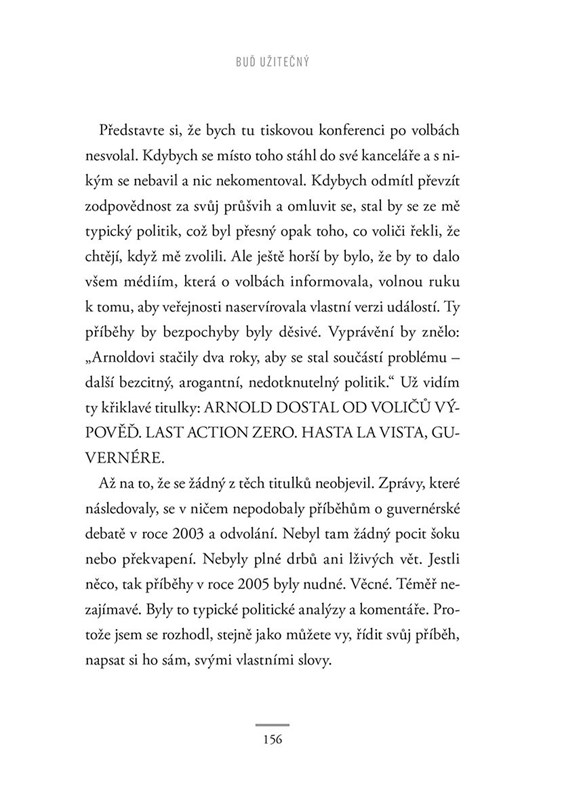 Nejslavnější kulturista všech dob. Ikonická filmová hvězda. Lídr šesté největší ekonomiky světa. Tři na první pohled zcela odlišné osobnosti se snoubí v jednom skutečném člověku. Tohle je Arnold Schwarzenegger. A na vrchol se nedostal náhodou. Jeho úspěch je výsledkem jasné vize, tvrdé práce, přímé komunikace a odhodlání. Teď vám na svém příběhu ukáže, že smysl života může najít úplně každý. Jak říká sám Arnold – nikdo vás nepřijde zachránit, máte jen sami sebe. Dobrá zpráva je, že nic víc nepotřebujete.