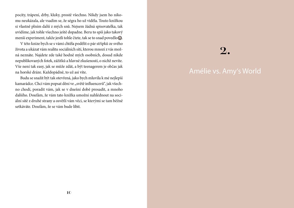 Tato kniha není jen dalším pohledem na život influencera. Otevřeně se zde dělím o své osobní zážitky, od dětství a nezapomenutelných prázdnin na venkově přes první lásky až po současnost. Najdete tu moje zkušenosti se sociálními sítěmi, online světem a spolupracemi. Poradím vám, jak se v dnešní době prosadit, a mnoho dalšího. Společně nahlédneme na sociální sítě z druhé strany a osvětlím vám věci, se kterými se tam běžně setkáváte. Jste připraveni vydat se na tuto cestu se mnou?