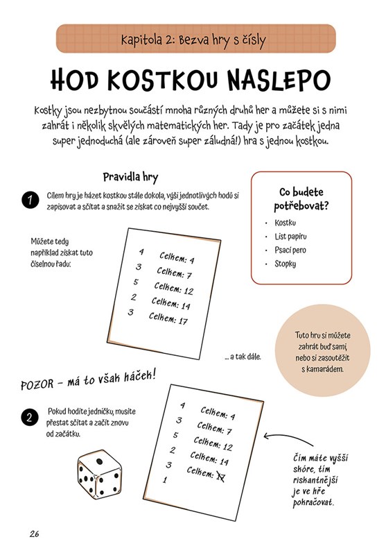 Připravte se na to, že vám z téhle knížky půjde hlava kolem. Je totiž hmatatelným důkazem, že matematika je prostě 100% PECKA! Najdete v ní překvapivá fakta, skvělé aktivity a neobvyklé triky. S pomocí matematiky budete nadšeně vytvářet nerozluštitelné kódy a zkoumat podivuhodné číselné vzorce a vaši příbuzní a kamarádi budou žasnout nad vašimi nově objevenými schopnostmi číst pomocí matematiky cizí myšlenky.