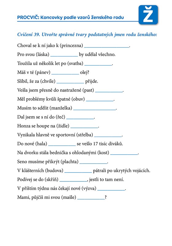 - Přehled správných tvarů koncovek u všech vzorů podstatných jmen