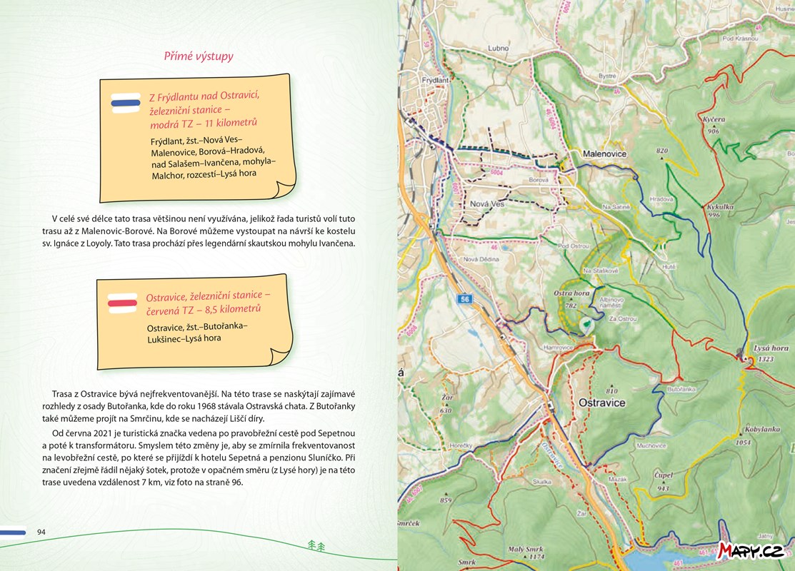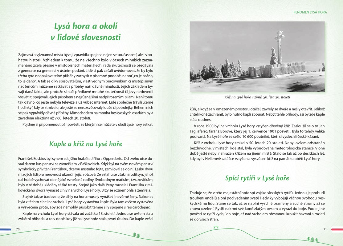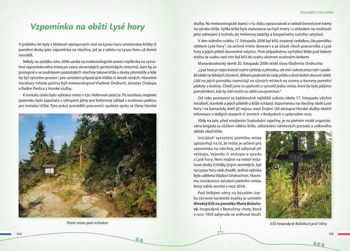 Kniha pro milovníky Lysé hory, ale i pro ty, kdo ji ještě neznají. Dozvíte se řadu informací o historii a současnosti chat a dalších objektů, o turistických trasách (doplněných mapami), o fauně i flóře, o místních osobnostech ze současnosti i z dob minulých, o závodech zde pořádaných. Naleznete tady také zmínky o okolních významných horách, o místním dění, obcích a zajímavých místech v okolí. Nechybí ukázky lidové slovesnosti, místního nářečí, vzpomínka na Petra Bezruče, dobové fotografie, výhledy z Lysé hory…