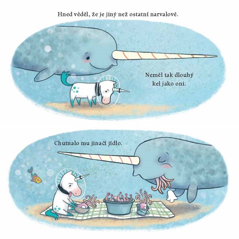 Malý Kelp je sice od narození trochu jiný než ostatní narvalové, ale všichni už si dávno zvykli, že zkrátka neplave tak rychle jako ostatní a že plody moře mu k obědu moc nejedou. Jenže jedné noci Kelp náhodou uvidí stvoření, které vypadá přesně jako on. No ne! Kelp není narval? Kelp je ve skutečnosti jednorožec?! A kam tedy doopravdy patří – do hlubin oceánu nebo ke svým novým pozemským přátelům?