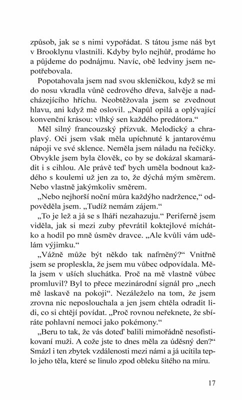 Mohla jsem na něj udělat dojem, nebýt těch nezapomenutelných chvil, když jsme se spolu minulý měsíc vyspali. Odešla jsem s něčím víc, než jenom oblažena orgasmy a příjemnou vzpomínkou – konkrétně s jeho peněženkou. Teď na mě zíral, jako kdybych byla špína pod jeho italskými mokasíny, a já si to mám nechat líbit.