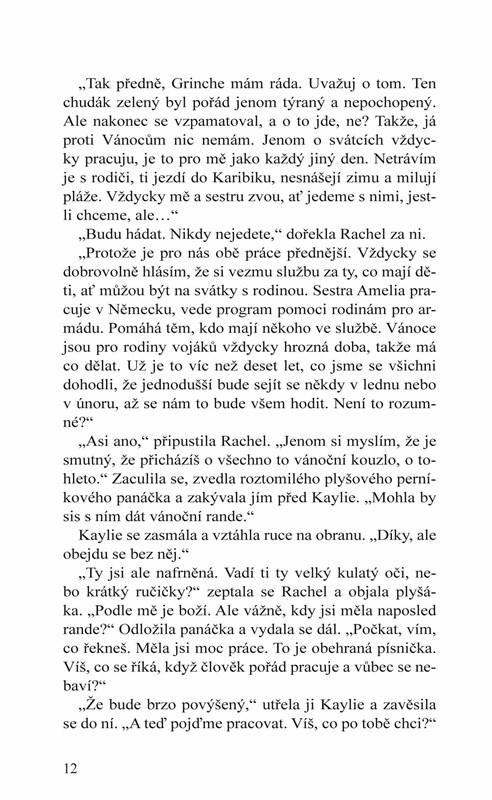 A ještě k tomu musí Kaylie snášet nerudného prince Alexandra, který dostal od královny za úkol seznámit cizinku s rodinnými svátečními zvyky. Jediné, na čem se americká investigativní reportérka a tolvánský princ aspoň trochu shodnou, je to, že si na všechnu tu pompu kolem Vánoc nepotrpí. A co se stane, když Kaylie nevědomky odhalí temné a přísně střežené tajemství královské koruny? Dokáže kouzlo Vánoc překonat všechny rozpory a přinést šťastný konec všem?