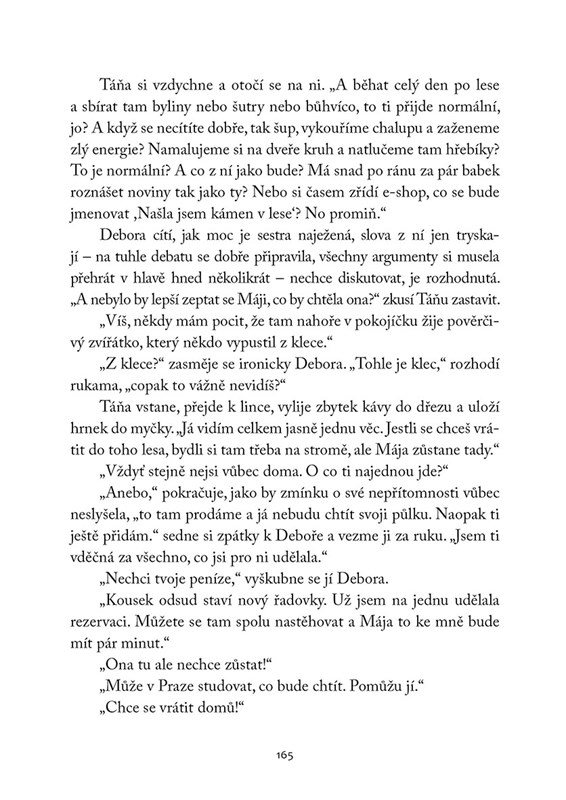 Děkuji Albatros Media za poskytnutí recenzního výtisku. První seznámení s dílem Karin Krajčo Babinské a hned taková nálož. Jestli si podle názvu představujete „witchy shit“, tak máte naprostou pravdu a představujete si to zcela správně. S těmi, kdo jsou na takovéto věci napojeni/ny, bude kniha velice souznít. A Ti, pro které to je něco vzdáleného a nesmyslného – doporučuji vyjít z komfortní zóny, přečíst si knížku a kdo ví, třeba si taky povšimnete silné energie, která vás při čtení chtě nechtě obklopí, nebo poukáže na věci vědomí skryté. Centrální postavou jsou sestry Táňa a Debora. Každá je jiná, stejně jako noc a den. Jsou vychovávány po generace se táhnoucí čarodějnou silou věšteb, čtení z karet, rituálů, sbírání bylinek, vyrábění tinktur a léčivých schopností. Táňa je úspěšná zpěvačka, která dělala vše proto, aby se vyprostila z rodinných vazeb a prostého života v chalupě na malé vesničce blízko přírody a dala přednost životu velkoměsta. Debora žije s Májou, dcerkou, v chaloupce, kde dojde jednoho dne k neštěstí. Debora se probere v nemocnici a pro čtenáře se začíná rozplétat osudná síť Hermíny, Eleny, Alexe, Jakuba, Debory, Táni, Máji. Příběh autorka postupně vykresluje ve třech časových linkách: - 1989-1995 - 2007 - 2019-2020 Člověk si musel zvyknout na spoustu postav a jmen, ale časové přeskoky by neměly činit čtenáři potíže. Ponořte se do věcí mezi nebem a zemí. Silných energií, ženské intuice, čarodějné magie, že to, co člověk do světa vyšle, tak se mu vrátí. Že skrytá traumata se můžou projevit v různých podobách, že není krev jako krev. Že je velký rozdíl mezi čarodějnictvím a čarodějstvím.