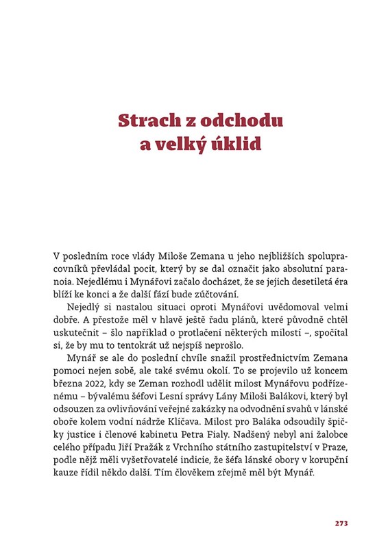 Investigativní novinářka Zdislava Pokorná se dění na Pražském hradě během této éry věnovala s mimořádným nasazením, za které dostala Novinářskou cenu. Zjistila řadu nových informací, a to prostřednictvím rozhovorů s desítkami zasvěcených lidí a také díky stovkám hodin strávených přímo na nádvoří Pražského hradu, kde sledovala, s kým se Zemanovi muži stýkají. Krom toho kniha přináší také první podrobný životopis Martina Nejedlého, jehož působení v Rusku bylo dosud zahaleno mlhou. Popisuje, jak Vratislav Mynář vydělal první miliony a jak rostla jeho mocenská pozice. Odhaluje, jak se vyvíjel Zemanův vztah s oběma premiéry z posledních let –? s Andrejem Babišem a Petrem Fialou. A shrnuje, jak se postupně zhoršoval prezidentův zdravotní stav, zatímco jeho nejbližší okolí to odmítalo řešit.