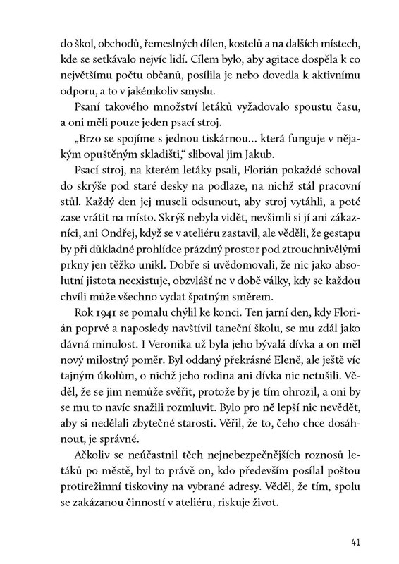 Jednadvacetiletý fotograf Florián Novák se během 2. světové války zapojil do protinacistického odboje. Tiskl letáky, roznášel tiskopisy…. A trest, který ho stihl, byl horší, než si v té době dokázal představit… jeho následky pak musel zpracovávat celý život nejen on, ale ovlivnily jeho rodinu navždy…