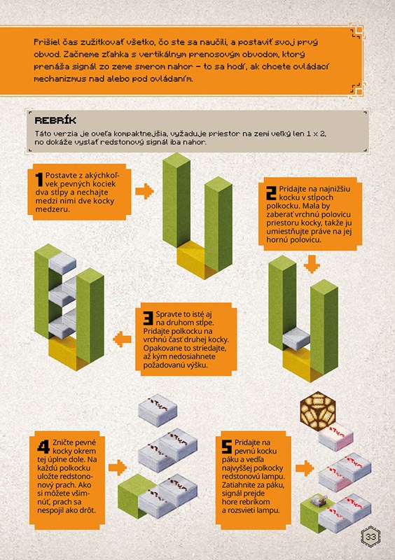 Posuňte svoje znalosti o redstone ešte ďalej. Poradíme vám, ako vytvoriť rôzne užitočné zariadenia od špeciálnych bezpečnostných systémov, ktoré budú chrániť vašu základňu, žartovných pascí až po úžasné automatické ťažobné stroje. S touto príručkou sa naučíte všetko, čo potrebujete, aby ste mohli začať kariéru redstonových inžinierov!