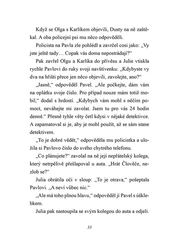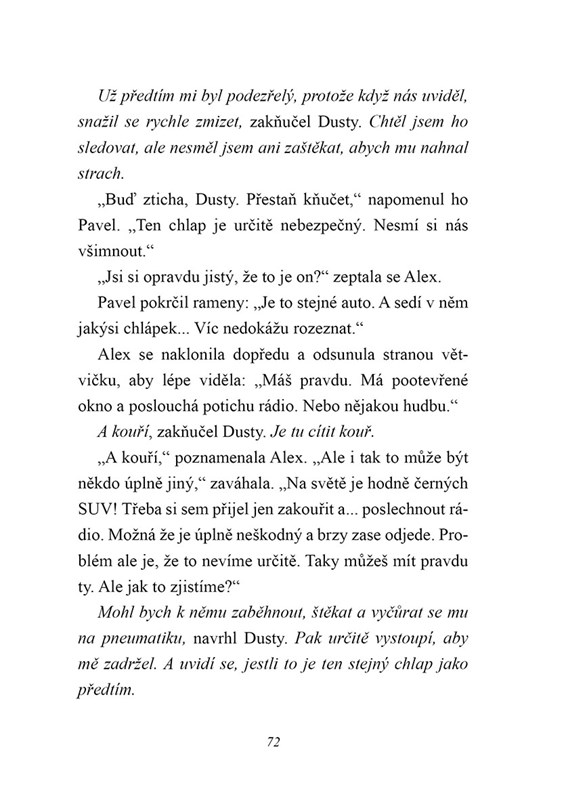 Když se Šarlotina kamarádka Nuria po narozeninové oslavě na lesním hřišti nevrátí domů, Pavel ví, co musí udělat: vydá se s Dustym ztracenou dívku hledat. Ale ani zkušený stopař Dusty zpočátku nenachází žádné stopy. A policie má děsivé podezření: dívka možná nastoupila do cizího auta a byla unesena! Pavel a jeho kamarádka Alex však této teorii nevěří. Nuria by něco takového nikdy neudělala! Mají vůbec šanci najít dívku včas? Vždyť nedaleko se nachází nebezpečná bažina...