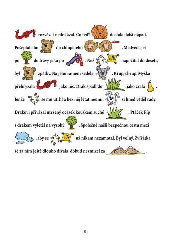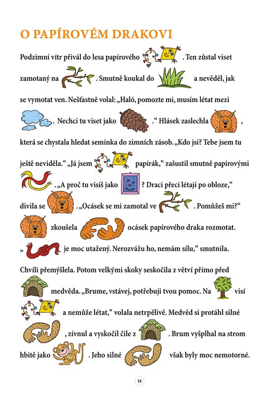 Čeká vás malované čtení, kde jsou některá slova nahrazena obrázky, takže se do čtení můžete zapojit, i když ještě všechna písmenka nepřečtete.