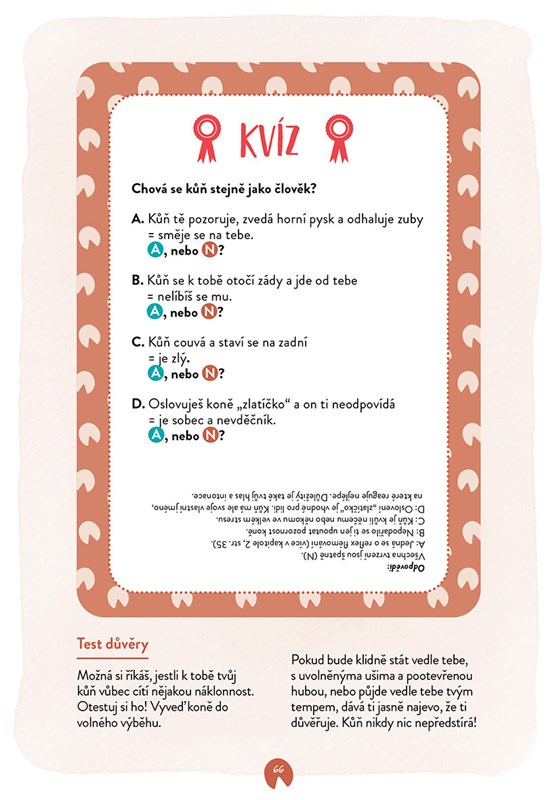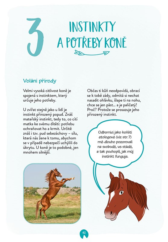 Díky pozorování koně zjistíš, co opravdu potřebuje a odhalíš jeho zvyky, instinkty a jedinečnost. Naučíš se také komunikovat v koňské řeči, takže pro tebe už nebude jeho frkání, mručení a řehtání žádnou záhadou. Díky tomu si se svým velkým přítelem skvěle porozumíte a vytvoříte krásné a pevné přátelství.