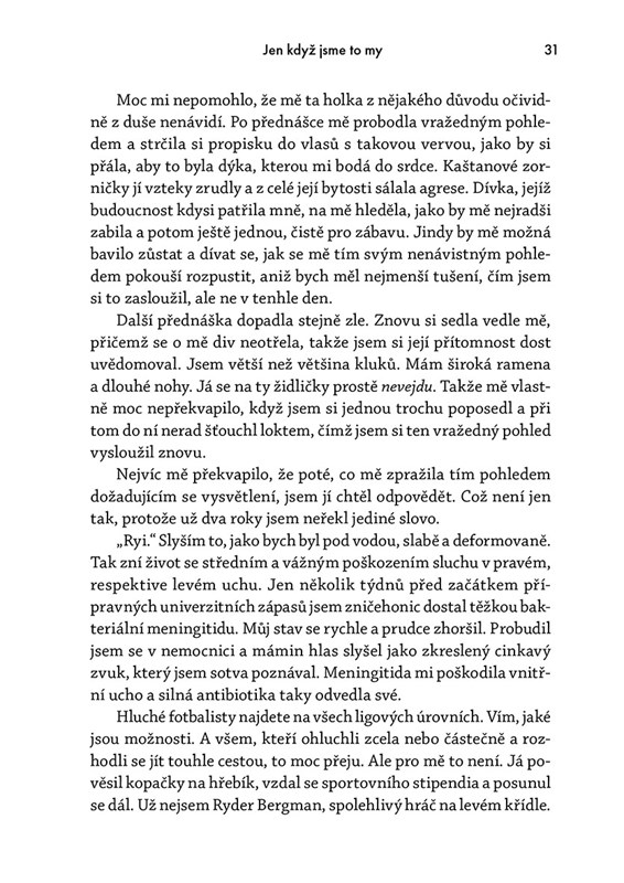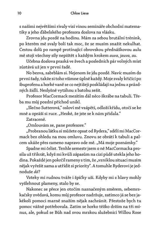 Willa je hvězda univerzitního fotbalového týmu – divoká, cílevědomá, tvrdohlavá. A Ryder Bergman? Urostlý mlčenlivý týpek, který odmítá brát její existenci na vědomí. Což by nevadilo, kdyby zoufale nepotřebovala poznámky, jež profesor bůhvíproč půjčil jen jemu. Když je okolnosti donutí spolupracovat na závěrečném projektu, Willa a Ryder rozehrají hru plnou naschválů, přičemž oba jsou odhodlaní stát se vítězem. Jenže ve hře, do které se připletou city, je hranice mezi vítězstvím a prohrou nečekaně tenká.
