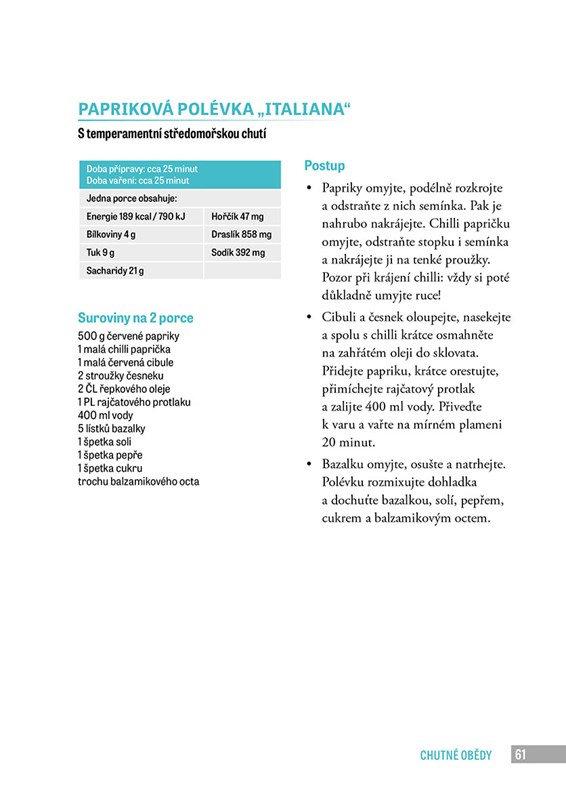 Vysoký tlak je nejčastějším civilizačním onemocněním, které lze zásadně ovlivnit změnou životního stylu a stravy. Tato kuchařka vám ukáže, jak s hypertenzí bojovat pomocí odlehčených receptů a snižování nadváhy. Základem je strava bohatá na ovoce, zeleninu, nízkotučné mléčné výrobky a minerály jako hořčík, vápník a draslík. Autoři tak nabízejí cestu, jak jíst zdravě, a přitom si pochutnat.