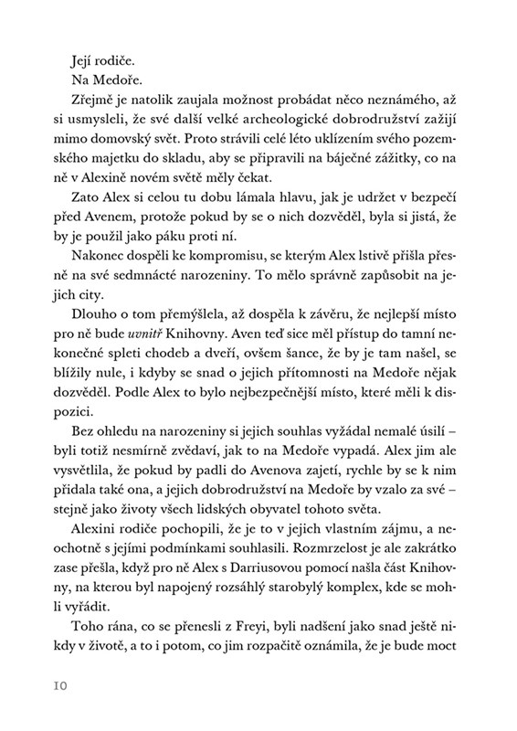 Alex znovu prochází dveřmi do Medory, aby se vrátila do druhého ročníku akademie Akarnae za svými nadanými přáteli. I když tu zažívá další neuvěřitelné zázraky, stále ji ohrožuje Aven Dalmarta, vyhnaný princ ze Ztraceného města Meya. Aby ochránila říši před jeho hněvem, musí legendární město co nejdříve vypátrat. Jenže Alex si přestává být jistá, kým – nebo možná čím – je. Ví jen to, že pokud Avena nezastaví, ocitnou se životy nesčetných Medoranů v ohrožení. Dokáže je ochránit, nebo bude vše ztraceno?