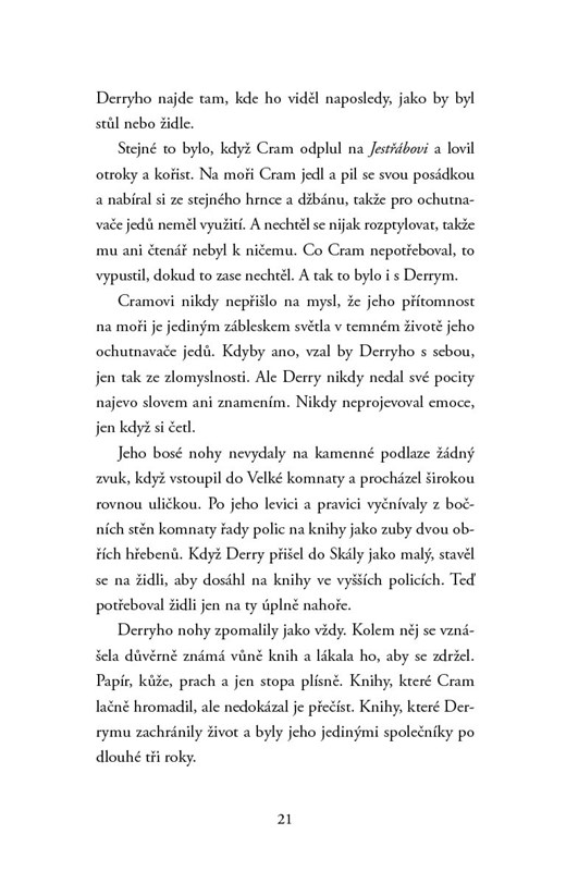 Derry nikdy nepoznal nic jiného než život zajatce na pirátském útočišti jménem Cramova Skála. Ostatní mladí vězni se mu vyhýbají, protože je Cramův ochutnávač jedů – a navíc umí číst, což je dovednost považovaná za nebezpečnou. Vše se změní, když na ostrov dorazí cestovatelka na útěku před zlověstnými katy z ostrova El. Než zmizí, předá Derrymu kouzelný zápisník plný tajemství, který by mohl odpovědět na mnoho otázek. Kdo Derry je? Odkud pochází? A proč by někdo riskoval život, aby mu to pomohl zjistit?