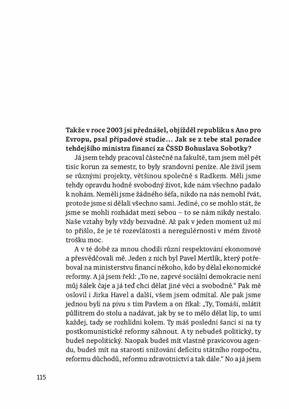 V knize se dozvíte také, jak Tomáše Sedláčka vidí ekonom Radek Špicar, herec Lukáš Hejlík, bývalí politici Bohuslav Sobotka a Petr Pithart a další.